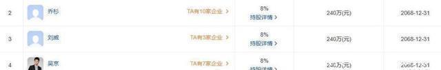 更有意思的是,还有一家关联公司叫北京好马文化,这公司的股东阵容更豪华,孙越、吴京、乔杉全在里头,每人持%,各认万,兑现时间居然定到年。 说起来,这好马文化早就年出过事儿,当时因𰹌.5万的执行款被曝光,这钱少得可笑,跟明星们的收入比起来,简直就是九牛一毛,可即便如此,也没及时解决。